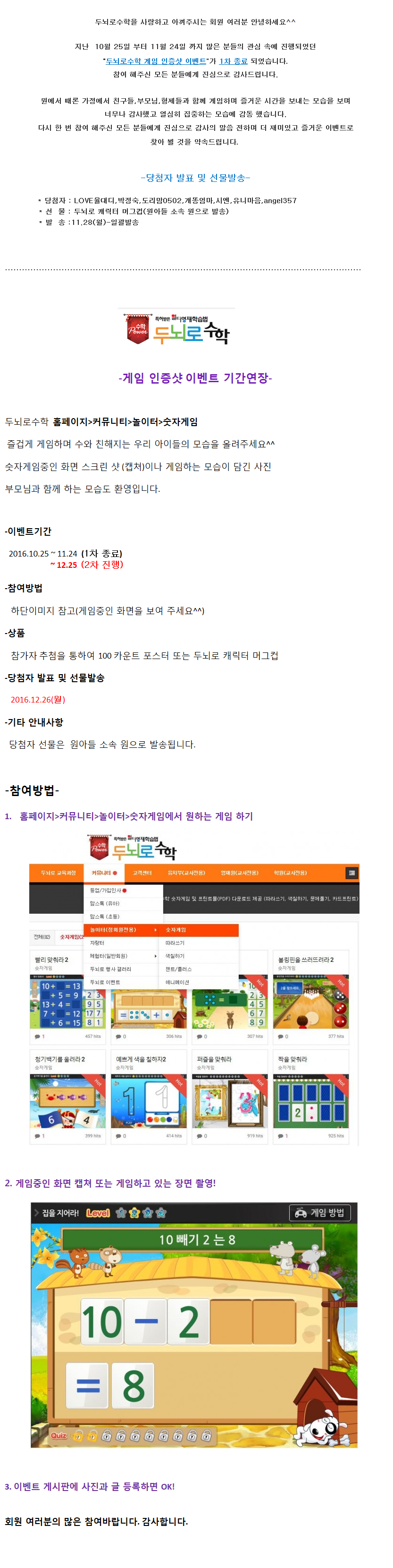 ★★ 두뇌로수학 게임 인증샷 이벤트 당첨자 안내 및 이벤트연장 공지 ★★