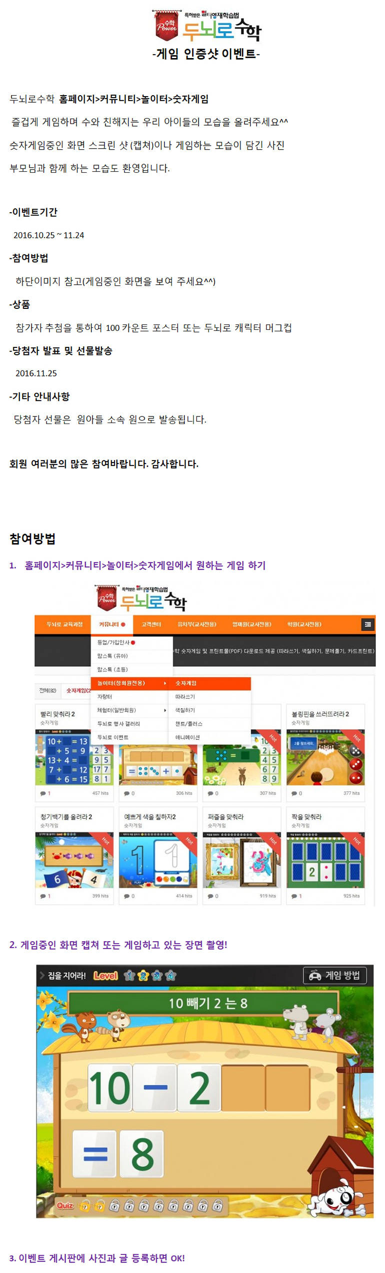 ★★ 두뇌로수학 게임 인증샷 이벤트 당첨자 안내 및 이벤트연장 공지 ★★