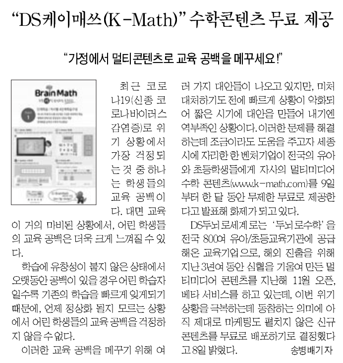[보도자료] DS K-Math 무제한 무료 이벤트 보도